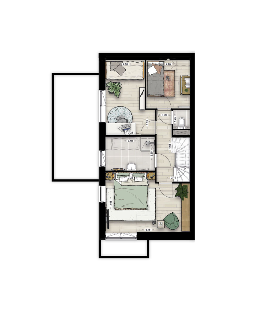 Op de eerste verdieping zijn standaard drie slaapkamers met fijne raampartijen. Heb je liever twee grotere slaapkamers? Dat kan!