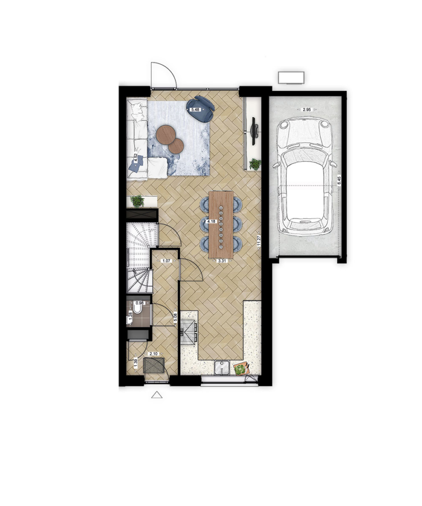 • Woonkamer met open keuken en uitbreidingsmogelijkheden;