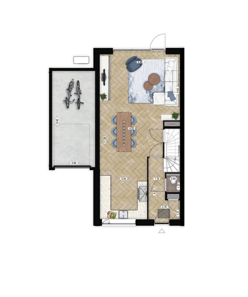 • Woonkamer met open keuken en uitbreidingsmogelijkheden;